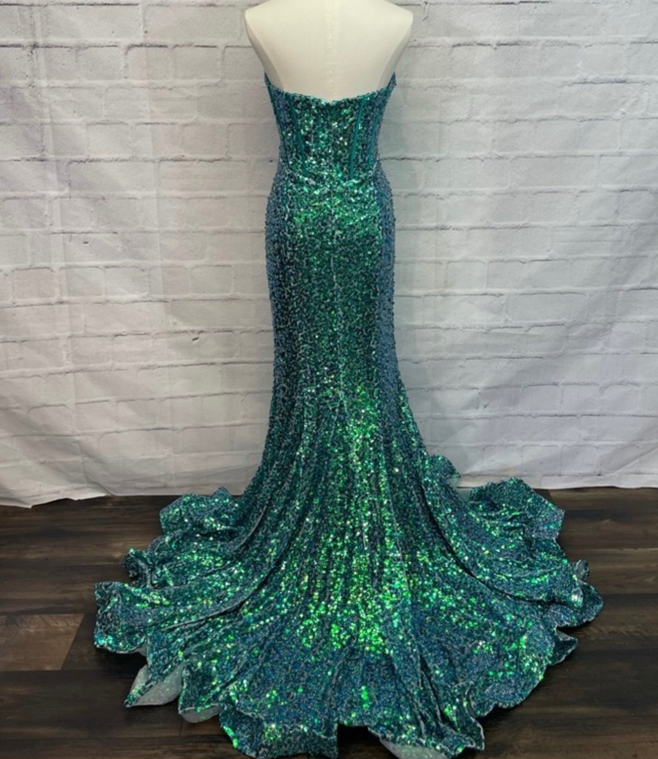 Become a show stopping stunner of eye-catching brilliance in Portia and Scarlett dress PS23293! Drenched in the brilliance of lustrous sequins and beads the slim silhouette gown showcases a strapless sweetheart neckline and an exposed boned corset bodice.